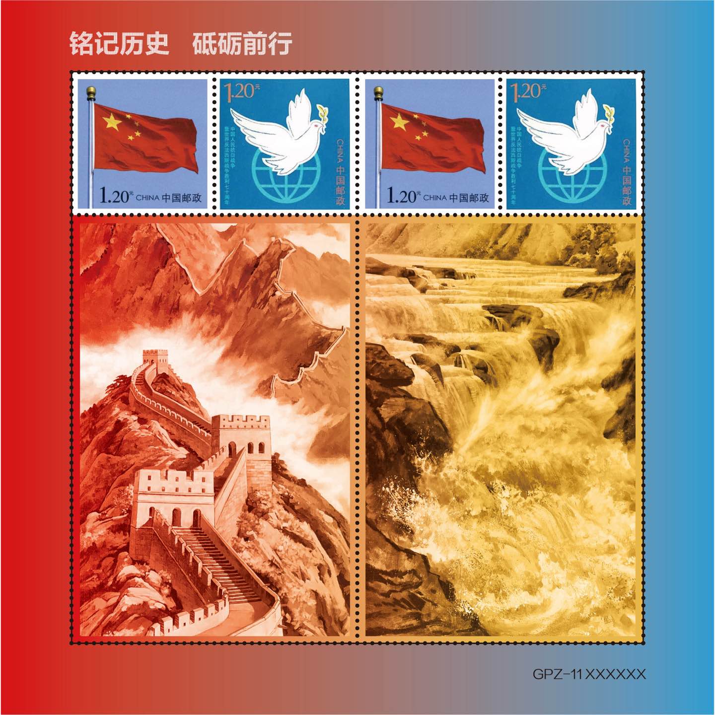中国集邮有限公司于2025年9月3日发行《铭记历史 砥砺前行》个性化双连张邮折,编号GPZ-11。