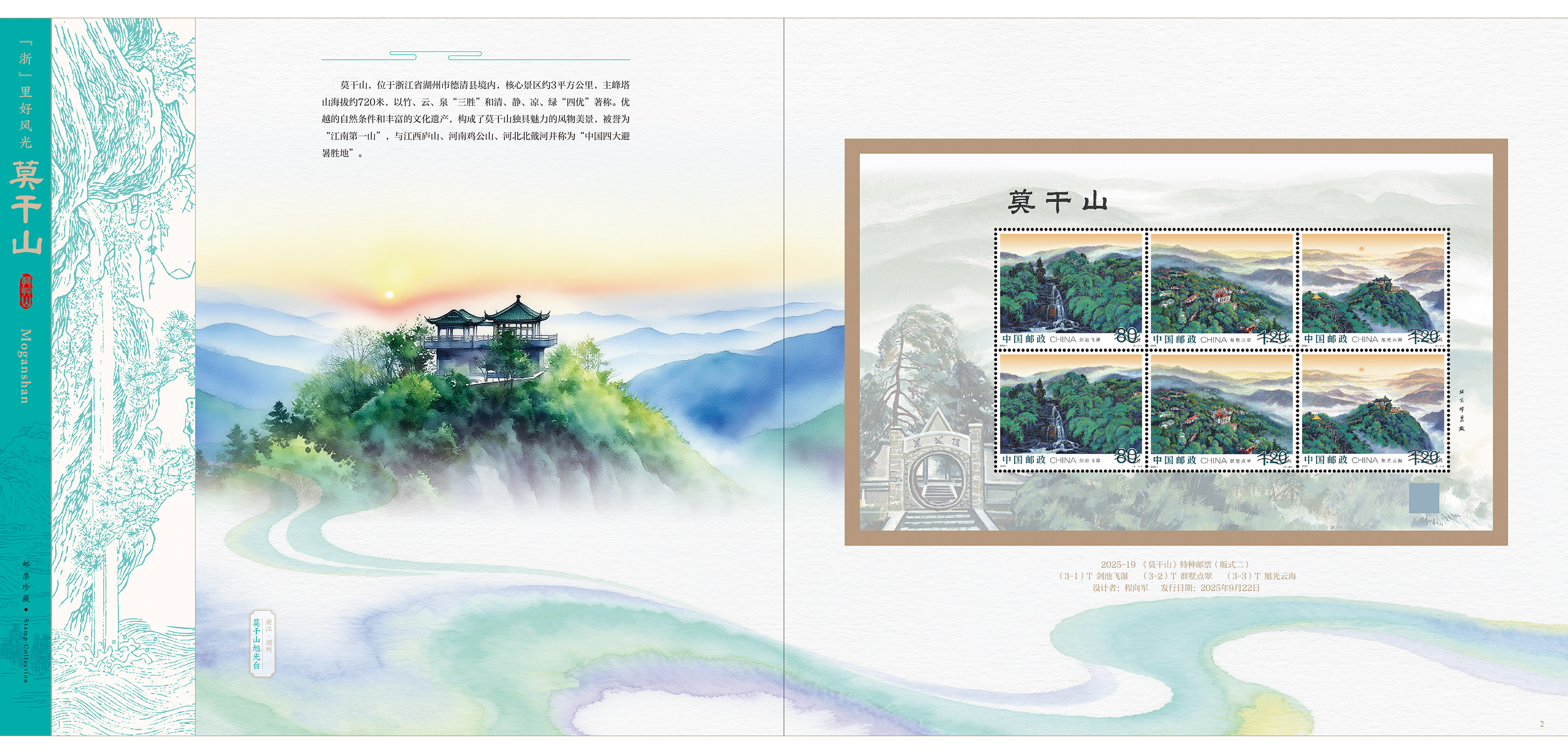 中国集邮有限公司于2025年9月22日发行《“浙”里好风光-莫干山》卡书一款。