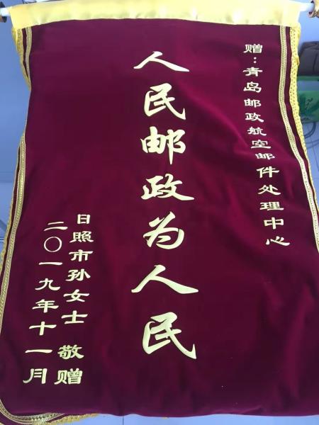 11月20日,日照孙女士通过客服中心联系到了青岛邮区中心局航空中心现场负责人员,称公司派其去荷兰参会,但护照及签证通过邮政寄递尚未收到,她已经预定当天19:30飞往荷兰机票,无法改签,希望邮政能帮助她。航空中心在了解情况后,面对双十一生产的巨大压力,立即组织员工查找邮件下落,并于找到后第一时间投递给孙女士,保证了她当天晚上顺利出行。事后,孙女士将一面写有“人民邮政为人民”的锦旗寄到航空中心,表达对航空中心热心服务的真诚感谢。