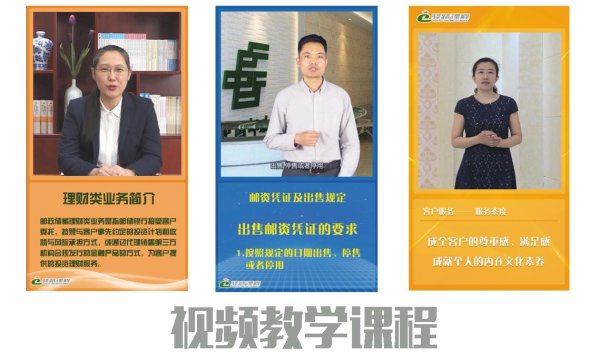 《岗前培训网络课程》以前期预备役岗前培训系列微课为基础,重新补充、调整教学内容,对邮政营业员和储汇业务员岗前培训内容实现全覆盖,使其成为一套完整的双工种岗前培训网络课程。该系列网课包括邮政营业、邮政储汇、客服礼仪、微机录入四门课程,每门课程又包含理论知识和操作演示等部分。所有内容均细化到最小知识点,每个知识点就是一节微课,共计169节,时长约920分钟。课程最大限度还原线下课堂的同时,发挥线上多媒体课件优势,设计场景实战教学,支持电脑端、手机端在线学习,极大优化了员工学习体验。培训中心将以此为契机,进一步整合教学资源,顺应网络时代教育培训发展趋势,走出自己的网络化转型之路。