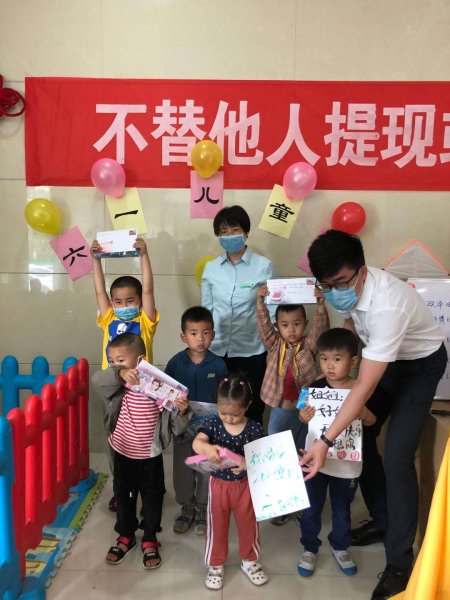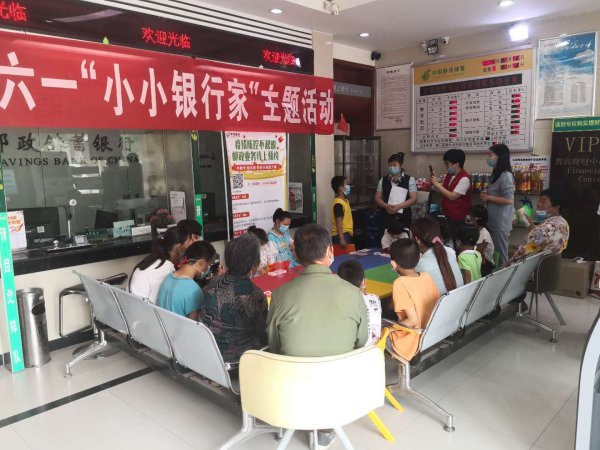 平原分公司开展庆六一“小小银行家”主题活动,网点理财经理教小朋友们认识人民币、如何识别真伪,孩子们扮演小小银行家,了解银行各项功能。