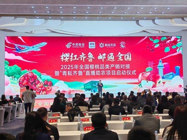 4月17日,由山东省邮政分公司主办的2025年全国樱桃品类产销对接会暨“青耘齐鲁”直播助农项目在烟台启动。活动依托邮政系统全链条服务优势,推动山东优质农产品全国化销售,助力乡村振兴。